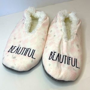 Rae Dunn "Beautiful" Light Pink Sherpa Lined Women’s Slipper Size 7/8