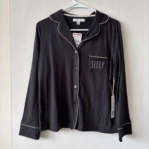 Rae Dunn Black Long Sleeve Button Down Sleep Top - Size Small - NWT