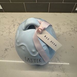 Charming Rae Dunn birdhouse. Light blue with 'Easter' text. Perfect for seasonal decor.