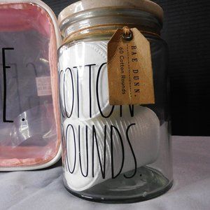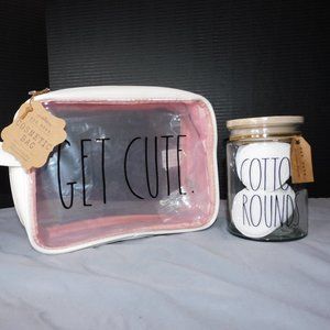 Rae Dunn bundle of Cosmetic bag & Cotton Rounds Glass container