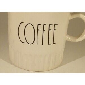 Rae Dunn Large White COFFEE Mug LL Magenta Artisan Large Embossed Ribbed Script