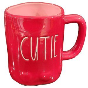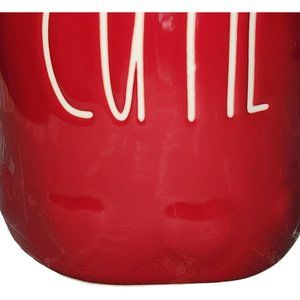 Rae Dunn CUTIE Red Ceramic Coffee Mug 16 Oz Embossed Hearts Around The Bottom