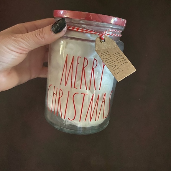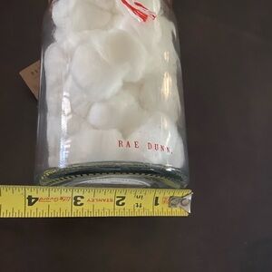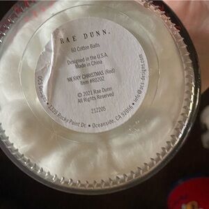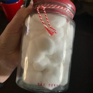 Comes with cotton balls but can be used for anything! Says merry Christmas in red with a red lid.