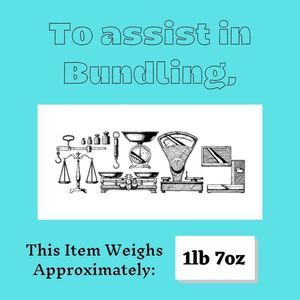 I love to bundle items and offer discounts, but please do not purchase bundled items that may weigh a total over 5 or 6 lbs before contacting me. Multiple bundles are of course welcome- but have to be created and purchased one at a time. If one of my items does not yet have the weight listed feel free to message me and I will gladly help! This will help avoid any shipping delays. Thank you!