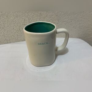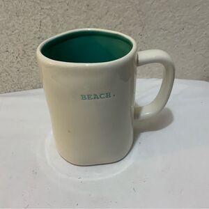 Rae Dunn Ceramic Mug Artisan Collection by Magenta. Off White, Blue “BEACH”