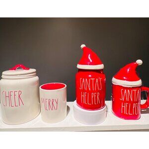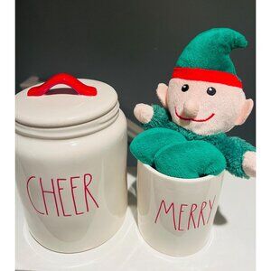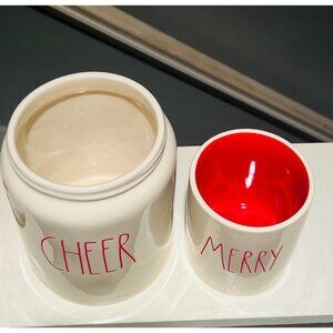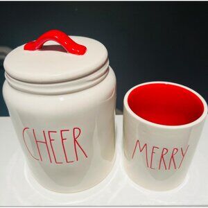 Bring joy to your holiday kitchen with this festive Rae Dunn duo — CHEER and MERRY. Both pieces feature the signature Rae Dunn red LL font on creamy white ceramic, perfect for adding warmth and charm to your coffee bar or holiday display.