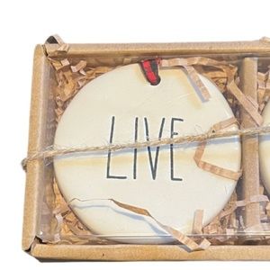 Rae Dunn Christmas Holiday Live Laugh Love Ornament Set Brand New in Box