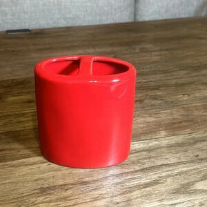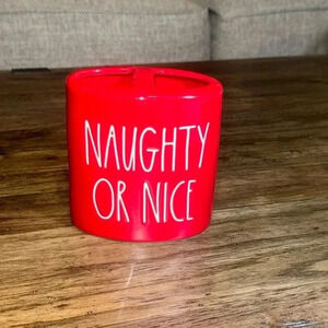 Rae Dunn Christmas Red Naughty Or Nice Makeup Brush/Toothbrush Ceramic Holder