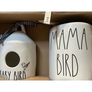 Rae Dunn Collectable Coffee Mug and Bird House Mama Bird Baby Bird Set
