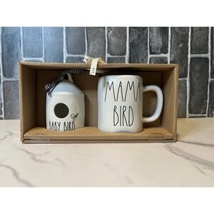Adorable Rae Dunn set with Mama Bird coffee mug and Baby Bird bird house.