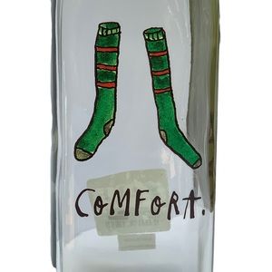 Rae Dunn Comfort Bail & Trigger Glass Bottle Socks Graphic NWT 2017