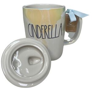 New iridescent CINDERELLA mug with glass slipper topper from Rae Dunn x Disney in ivory and black LL