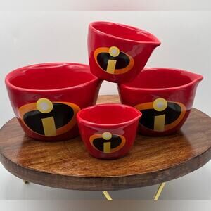 Rae Dunn Disney Pixar Incredibles 4 Piece Red Ceramic Measuring Cup Set New Gift