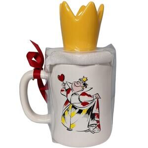 New Rae Dunn Disney's Queen of Hearts topper mug. Topper features the queen's crown and the mug has QUEEN OF HEARTS on one side and a color sketch of the queen on the opposite side. Perfect addition to an Alice in Wonderland collection, or a Disney villain collection! Excellent condition. All items ship within 2 business days!