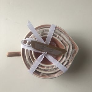 This Rae Dunn Disney Tinker bell measuring cup set is perfect for any occasion. With four cups included, this multicolor set is sure to brighten up any kitchen. The cups are made of ceramic and feature a rare 2023 design with a pink interior. The set is a must-have for any Rae Dunn franchise collector and would make a great addition to any kitchen tool and gadget collection. Get your hands on this limited edition set today!