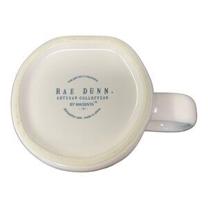 Rae Dunn pottery is handcrafted and known for imperfections, including marks, dents, dimples, bubbles, and glaze imperfections.