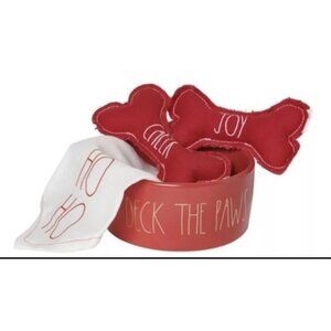 Rae Dunn Dog Food Bowl Christmas Gift Set “DECK THE PAWS” W/ Pet Bandanna & Toy
