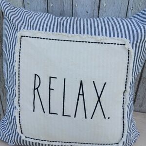 Rae Dunn Down Filling Cotton Cover Throw Pillow Stripe "Relax" White Gray