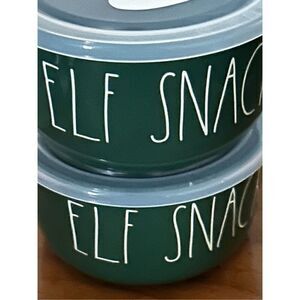 Rae Dunn ELF SNACKS Green Ceramic Bowl w/Lid