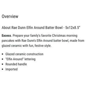 Rae Dunn ELFIN AROUND Batter Mixing Bowl 5"×12"×8.5" Ceramic Christmas Baking.