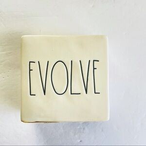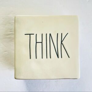 Rae Dunn Evolve/ Think square ceramic office black cream