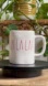 NWOT Rae Dunn mug with red interior and outside in Red letters say FA LA LA!