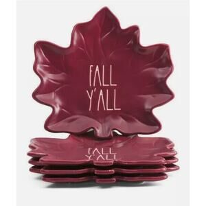 Rae Dunn Fall Y'all Ceramic Leaf Plates Set of 4 Magenta