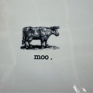 Rae Dunn Farmline Farmhouse Serving Platter. From the very popular Farmline collection. Featuring a Steer, Chicken and Pig with embossed “Moo”, “Cluck” and “Oink”. Good preowned condition with light surface scuffs from stacking (see last 2 pics). Please note, this platter is not a perfect rectangle, which adds to the handcrafted and rustic vibe.