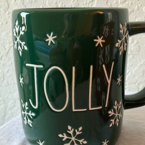 Rae Dunn: Festive Green Jolly & Red Holly Holiday Mugs- set of 2