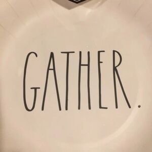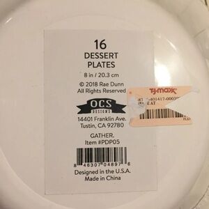4 packs of small dessert/appetizer size plates, 16 plates per pack. Ivory with GATHER in black large letters.