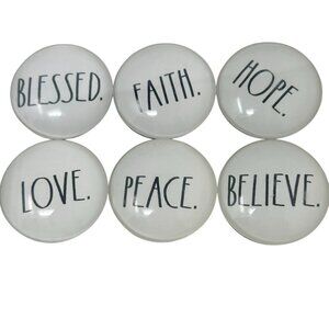 Rae Dunn Glass-Dome Magnet Set BLESSED FAITH HOPE LOVE PEACE BELIEVE New Gift