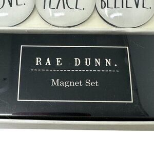 Bring charm to your space with this Rae Dunn 6-piece magnet set featuring inspirational words in the signature Rae Dunn font. Glass dome design, new in box.• Made from high-quality glass and magnets .