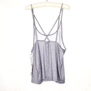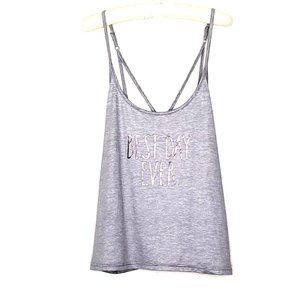 Rae Dunn Gray Criss Cross Tank Top Silver BEST DAY EVER