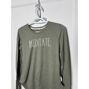 Rae Dunn Green Meditate Long Sleeve Knit Lounge Graphic Open Back Top Medium