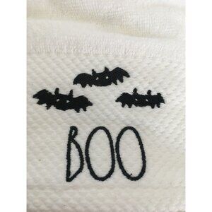 Rae Dunn Halloween Hand Towels Boo Bats Set of 2 16 x 30 in White with Black New