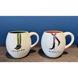 Rae Dunn Halloween Mugs Set 2 NEW Witch Is In Spell On You Orange & Green 2022