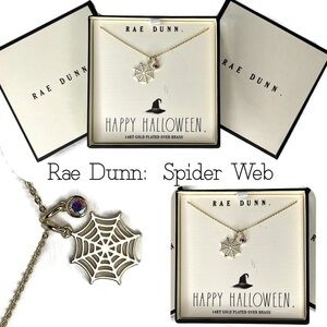 Rae Dunn Halloween Necklaces Cat Sugar Skull Skeleton Spider Web Silver Gold