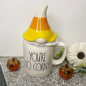 Rae Dunn Halloween You’re So Corny Gnome Mug with Candy Corn Topper.