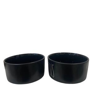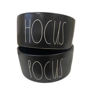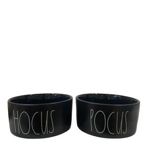 Rae Dunn black bowls! Set of two black ceramic bowls. Features 'Hocus' and 'Pocus' text. Perfect for Halloween decor