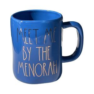 Rae Dunn Hanukkah Inspired Coffee Mug (Meet Me By The Menorah) Blue Gold NWOT