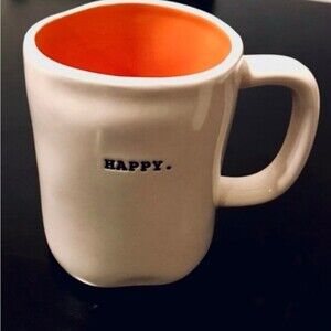 NWT Rae Dunn Happy Ceramic Typewriter Mug/orange colored inside mug.