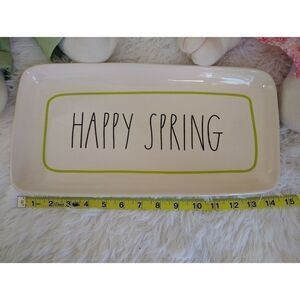 HAPPY SPRING Platter Serving Tray with Green Border. Rae Dunn Collection by Magenta