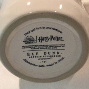 Brand New! Rae Dunn Harry Potter POLYJUICE POTION mug. This shiny, white mug has a beautiful black interior. Black lettering with image on back as pictured. This mug is taller than traditional Rae Dunn mugs and has a thicker handle. Dishwasher safe. May get hot in the microwave. Ceramic. Approx 5 1/2” tall.