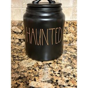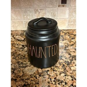 Brand new Rae Dunn black HAUNTED Halloween canister!