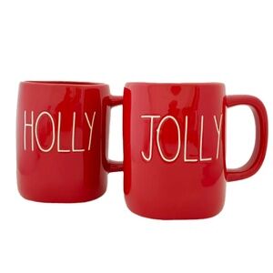 Rae Dunn Holiday HOLLY, JOLLY Red Set of 2 Mugs By Magenta NWOT