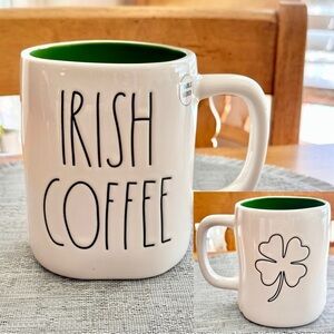 Rae Dunn IRISH COFFEE 4 Leaf Clover Double Sided Ceramic Coffee Mug BRAND NEW!!