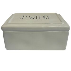 Rae Dunn Artisan Collection ceramic jewelry box with lid — signature hand-lettered “JEWELRY” design.