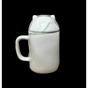 Rae Dunn Kitty Cat Ceramic Mug Lid 7" Tall White Black Text Adorable Giftable