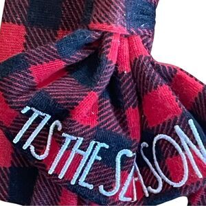 Set includes two headbands - one for Mom/Adult and one for Daughter/Kid. The adult headband is a fabric wrap style, the kids headband also has a bow with "Tis the Season" embroidered on it in Rae Dunn's signature font.