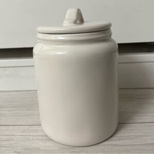 Rae Dunn MEDIUM JINGLE BELLS Lidded Canister White w/Red Letter Ceramic 8"x5"